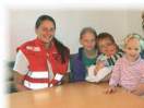 V. l.: Rettungssanitäterin Magdalena Fritzer, die Geschwister mit dem