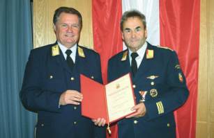 Landesfeuerwehrkommandant LBD Josef Meschik (l.) überreichte