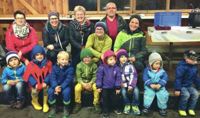 Zottl-Schaller (Leitung Naturkindergarten ALSOLE) und die Kinder.