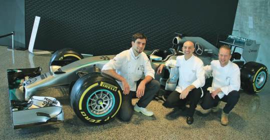 V. l.: Chef-Patissier Thomas Kostner mit Bestseller Autor und Zwei-Sternekoch Gerhard Wieser und Sous-Chef Georg Untersteiner.