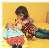 Schwester Paloma (2 Jahre alt) ist glücklich, endlich
