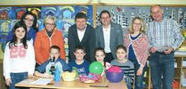 Kindergarten Ost) und FSSZ-Direktor Sigi Grutschnig mit Evin, Lukas, Florian,