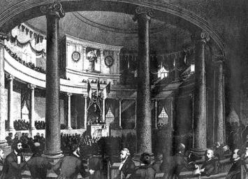Blick in das Innere der Paulsk irche zur Zeit der Nationalv ersammlung; zeitgenössi-