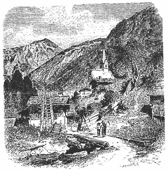Blick auf das Zentrum von Kals, Holzstich von Richard Püttner, ab-