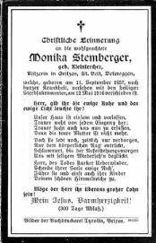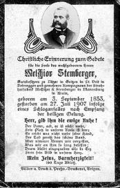 Sterbebildchen von Josef Stembergers Eltern, Melchior († 1907) und Monika Stemberger, geb. Kleinlercher († 1916).