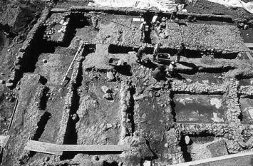 des Atriumhauses während der Ausgrabungen 1996. (l. und hinten: Umgang; r. vorne: