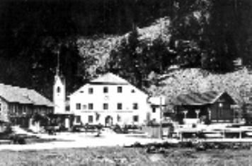 Blick auf das Kirchdörfl von St. Johann im Walde mit „Vergeiner‘s Gasthaus“, um 1890.