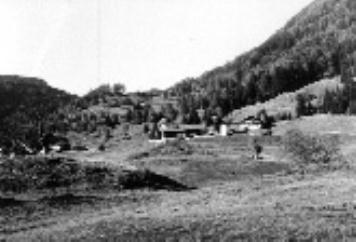 Rechts das Schulhaus von Leibnig. Unterricht wurde hier erteilt von 1958 bis 1982, Links