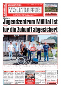 ONLINE LESEN schon am Wochenende WOCHENBLATT O BERKÄRNTNER Tel.: 04852/65151-0 • Fax: 04852-65510 • E-Mail: oberkaerntner@volltreffer.co.at Preis: 2 € • Österreichische Post AG • RM 98A990004K • 9900 Lienz Montag, 5. Juli 2021 • Jahrgang 23 • Nr. 27 118549 Volltreffer der entscheidende Vorsprung! Anzeigenannahme: Tel. 04852/65151-0 Weitere Anzeigen finden Sie auf den Seiten 17 bis 23 Verkaufe Königinnen, Bienen- völker und Ableger, EM und ZM, ab Mitte Juli Kunstschwärme. BIO ACA-Zuchtbetrieb, Imkerei Hopf- gartner, 9811 Lendorf, St. Peter in Holz 24, Tel. 0676-5094233. Junghennen, legereif, bei Geflü- gelzucht Brunner, 9800 Spittal, Oberamlach 6a; 04762-3853. Ver- kauf jeden Mittwoch. Gut gereiftes Bergkräuterheu in Kleinballen. Tel. 0664-2428105. Oberkärntner sucht Oberkärnt- nerin! Bist du eine Frau, die auf Partnersuche ist, dann bist du bei mir richtig. Ich, 70+, verwitwet, gesund und aktiv, wünsche mir eine ebensol- che Frau. Sie sollte gut gebildet, nett und sie darf auch religiös sein. Zu- schriften an die Verwaltung Chiffre V 189999 oder Tel. 0681-81496364. Margit, 60 J. Junggeblieben, sehr flott, tanzt sehr gerne, ist romantisch und glaubt an die große Liebe ... Tel. 0664-3246688, www.sunshine- partner.at Grünland zu mähen, beweiden oder zu verpachten. 0,9 ha sonnseitiger Hang im Zentrum von Winklern mit sehr guter Zufahrt. Leicht abzu- zäunen. 0699-81916478. Kaufe jungen Ziegenbock, ohne Hörner, Rasse egal. Tel. 0676- 4141957. Verkaufe Maisballen und Grassi- lage zugestellt. 0676-9797582. Zwei schöne, kleine, getigerte Mischlingskätzchen abzugeben. 0676-6393866. Bahnhofstüberl Hermagor, Gas- tronomie mit Tabakverkauf, sucht motivierte, flexible Mitarbeiterin, ca. 40 Std./Woche, 5/6-Tage/Woche im Wechseldienst vormittags bzw. nachmittags, Erfahrung im Gast- gewerbe und Erfahrung mit digi- taler Kassa erwünscht, aber nicht zwingend erforderlich. Bewerbung unter bahnhofstueberl@aon.at oder 0664-73108000. Welcher Pensionist(in) hat Lust, unsere Gartenarbeit zu übernehmen? Weissensee, 0699-10024691. STELLENMARKT LANDWIRTSCHAFT/TIERE Weitere Anzeigen finden Sie auf den Seiten 20 bis 27 PARTNERWÜNSCHE Jugendzentrum Mölltal ist für die Zukunft abgesichert Winklern: Seite 18 SONDERTHEMA O R T S P O R T R A I T DÖ L S A C H Seite 14 bis 17 Kärntenweit werden gerade elf Naturerlebnisse barrierefrei zugänglich gemacht, eines davon ist der Almwanderweg von der Egger Alm zur Dellacher Alm, der kürzlich eröffnet wurde. V. l.: Robert Heuberger, LAG-Manager Mag. Friedrich Veider, Stefan Brandstätter, Anita Mösslacher, Bgm. Leopold Astner, Bgm. Karoline Turnschek, LR Sebastian Schuschnig und Peter Noflatscher. Bericht Seite 2/3. Foto: NLW/Ruth Rauscher