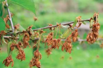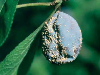 Befallene Früchte schrumpfen, fallen ab oder bleiben als
