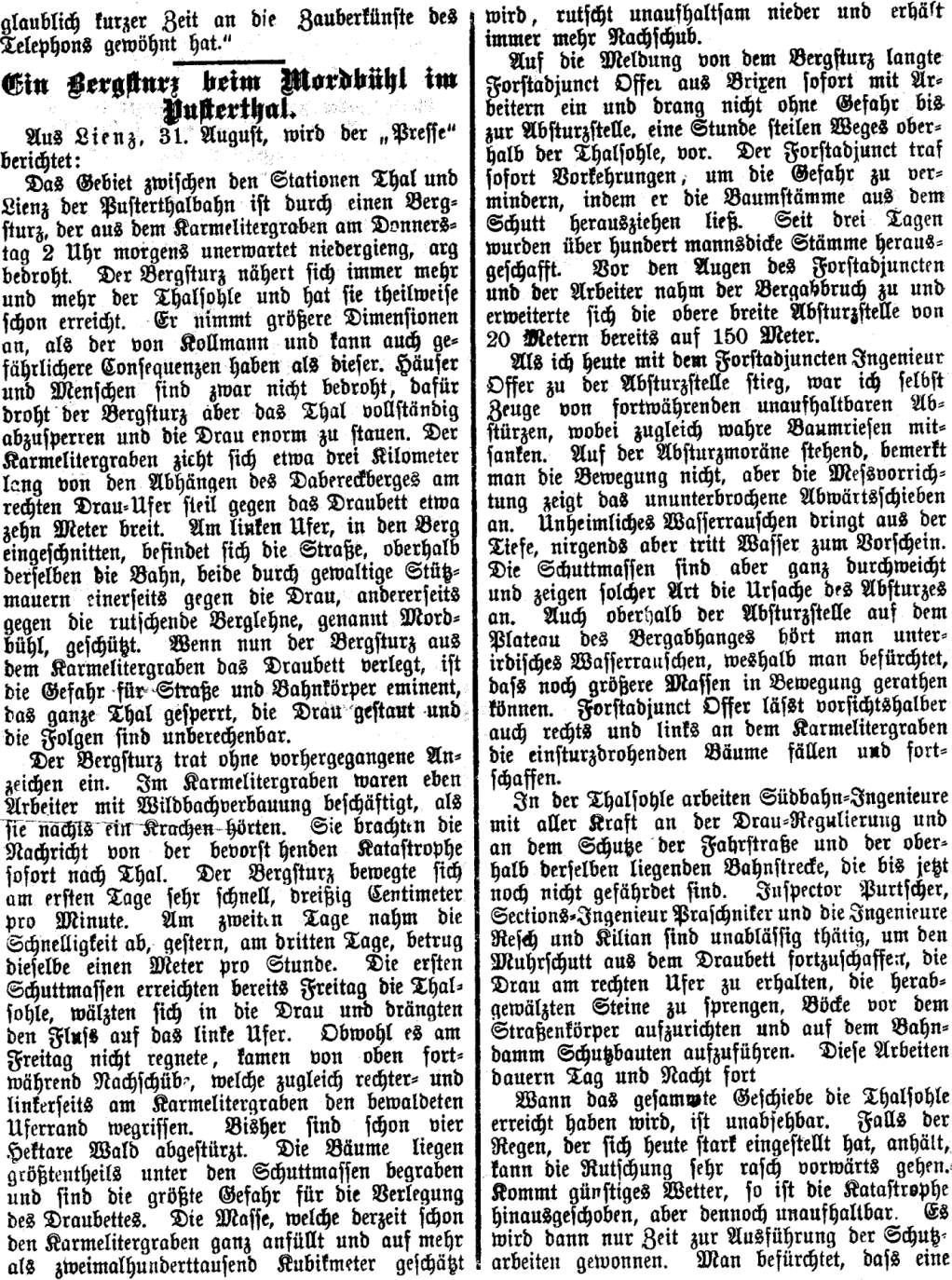 Vor 122 Jahren: Bergsturz aus dem Karmelitergraben
