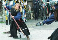 mittelalterlichen Gewändern. In ihrem knapp