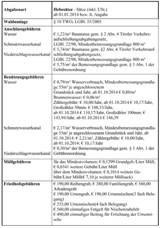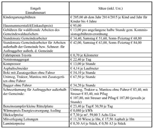 Assling für das Rechnungsjahr 2014 mit folgenden Gesamtsät-