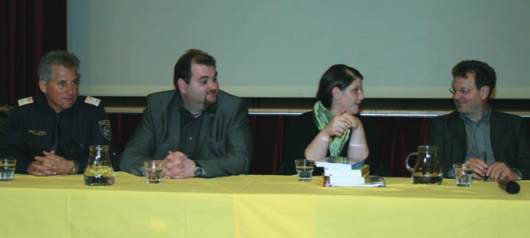 Inspektionskdt.-Stv. Schneider, Mag. Eschgfäller, Dr. Reisner und DI Unterweger stellten sich den Fragen der Bevölkerung.