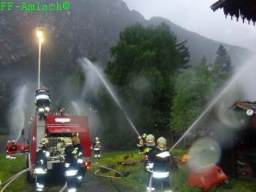 Versuchen sie, den Brand mit Feuerlöscher oder Wasser zu löschen.