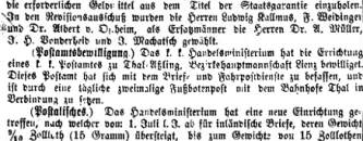 vom 3. Juli 1873, die Postamtsbewilligung für die neu zu schaffende Poststelle in