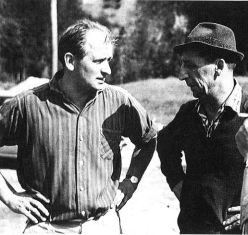 Besprechen den Bau des Schwimmbades: Ingnaz Unterweger und