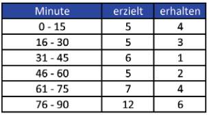 30 Minuten. Auch in der 1. Halbzeit ist man gegen Ende hin