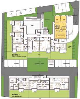 Im nördlichen, dreigeschossigen, Wohnblock werden insge-