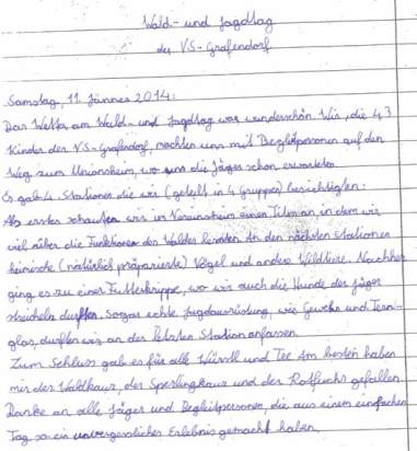Der Wald- und Jägertag aus der Sicht der Schülerin Sabine Waschnig: