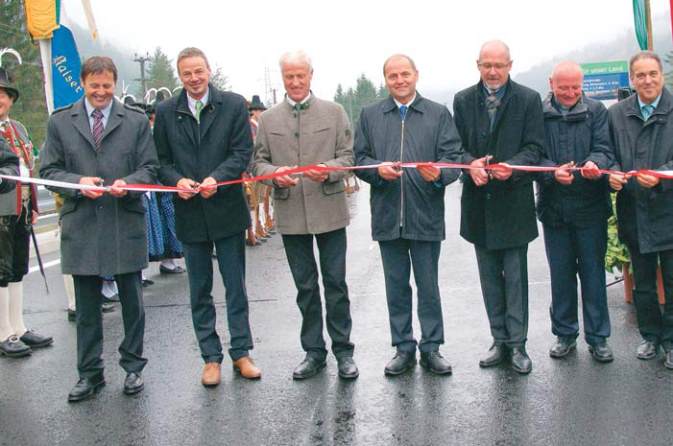 Die Umfahrung ist offiziell eröffnet: Das Band ist durchschnitten.