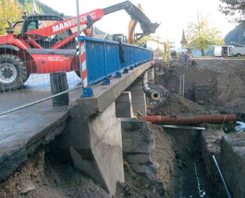 chende neue Brücke gebaut. Die Umleitung während der Bau-