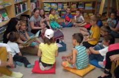 Die Kinder lauschen der Geschichte „Findus zieht um“