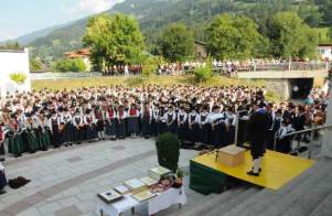 800 MusikantInnen spielten am Debanter Kirchplatz gemeinsam bei Messe und Festakt