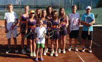 Tennisjugend: hinten: Idl Roman, Schmuck Julia, Fiechtner Carina, Abfalterer Patrizia, Wilhelmer Sa-