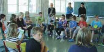 Schüler der vierten Klasse beim Vorlesen ihrer Fünf-Minuten-Geschichten