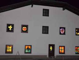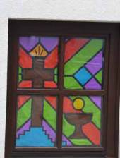 Beim Basteln der Bilder für die Herz-Jesu-Beleuchtung