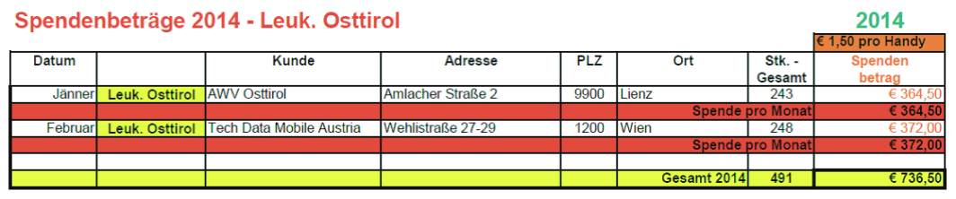 Kinderkrebshilfe Osttirol überwiesen. So konnten 2013 über diese Sammelschienen