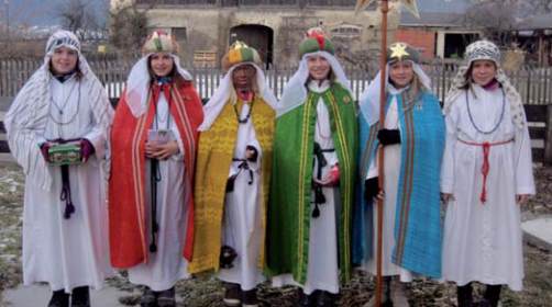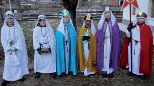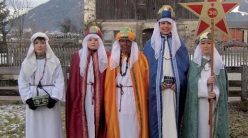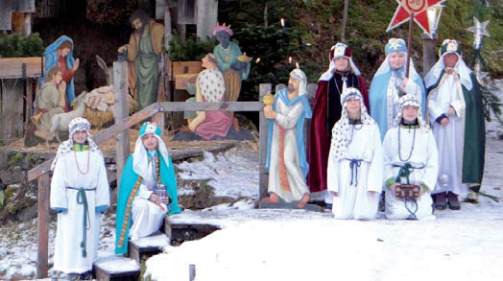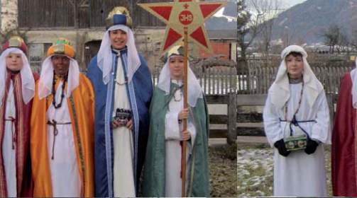 Unsere jüngste Sternsingergruppe bei der Krippe am Trista-