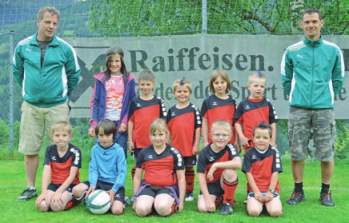 Die U 7-Mannschaft mit ihren Trainern Edi Mariner und Mario Patterer.