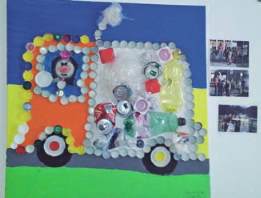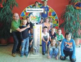 Mit demMüllbarometer und den selbstgebastelten Bildern aus Müll wird den Schülern im Rahmen des Schulprojektes