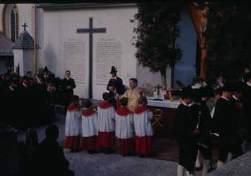 Segnung des Kriegerdenkmals im Jahr 1968 durch Ortspfar-