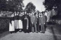 Bischof Rusch um 1960 mit einer „Auswahl“ an Pfarrange-