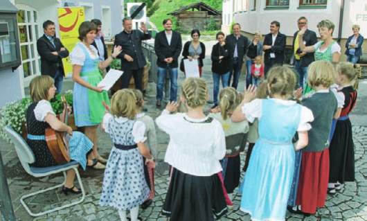 Begeistert zeigte sich Umweltminister DI Rupprechter vom Empfang durch den „Kindergartenchor“.