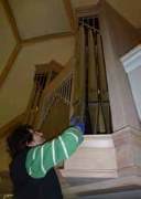 Stimmen fertig. Dies erfolgt im Herbst 2014. Orgelbaumeister Linder lauscht ergriffen erstmals den Klängen der neuen Orgel