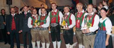 Die Obleute der Musikkapellen mit den Präsenten der Bürgermeister.