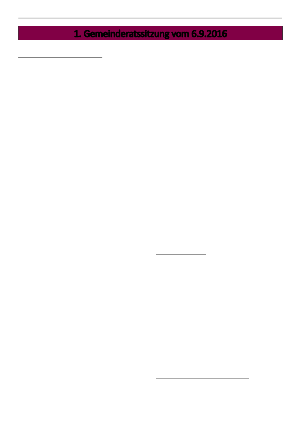 1. Gemeinderatssitzung vom 6.9.2016