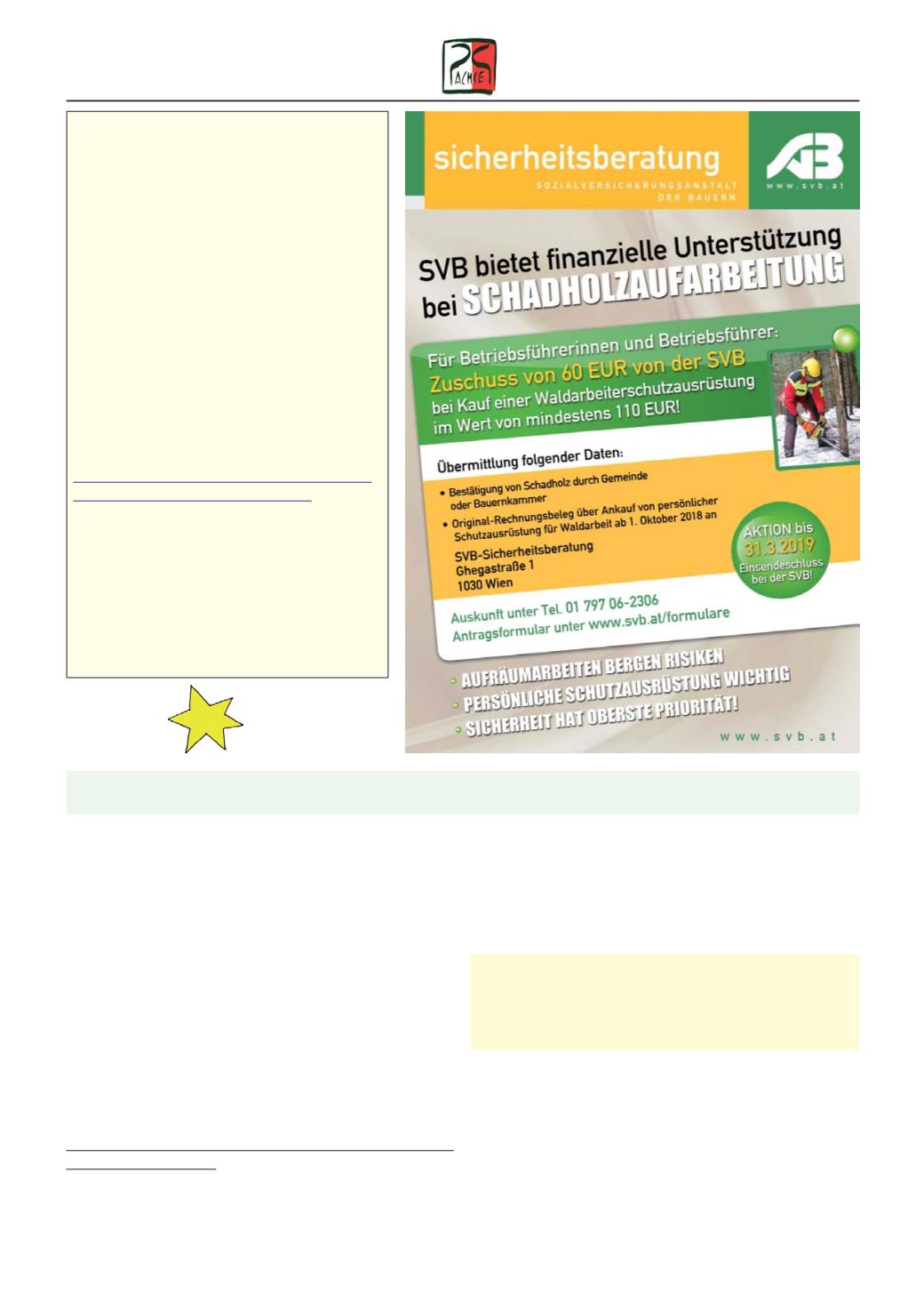te Maßnahmen für 2019. Anmeldungen zur Holzschläge-