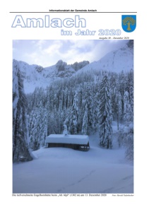 Informationsblatt der Gemeinde Amlach Ausgabe 30 Dezember 2020 Seite 2 Liebe Amlacherinnen und Amlacher! Frohe Weihnachten und ein gutes und glückliches neues Jahr wünsche ich allen aufrichtig und sehr herzlich! Vor allem den Kindern wünsche ich ein frohes Fest und ein braves Christkindl! Ein braves Christkindl wünsche ich aber uns allen – vielleicht hilft es uns diese schwere Belastung durch das Virus zu überwinden. Ich wünsche euch Geduld und Gelassenheit, die sicher nicht leichten Einschränkungen, die wir zurzeit erdulden müssen, leichter zu ertragen. Möge sich das unsympathische Virus an uns die Zähne ausbeißen! Bedanken will ich mich aufrichtig bei allen, die zur Arbeit in unserem Dorf – in unserer Gemeinde beigetragen haben. Bei Thomas und Gitti, dem Gemeinderat, dem Michael Preyer und der Feuerwehr, dem Peter Perfler, dem Hermann Tagger, der die Wiere perfekt betreut, unseren Waldaufsehern Franz Amort und Sebastian de Jel, unserem Wassermeister Andreas Libiseller und Andreas Müller für die Betreuung der Müllsammelstelle. Den Frauen vom Sozialkreis, dem Karl Holzer und der Lawinenkommission, allen die unserem Pfarrer Siegmund Bichler bei der Kirche mithelfen. Den „Eismännern“, den Kindergartentanten und Helfern und schließlich allen die das Gemeindehaus, Feuerwehrhaus und Kindergarten sauber halten und allen, die dazu beigetragen haben, dass unser Dörfl eigentlich ganz gut ausschaut, sauber ist, dass die Leut` halbwegs geschaff`n, „Z‘ n i c h t e“ haben wir Gott sei Dank ganz wenige bei uns. Also ich wünsche euch das Beste das es überhaupt gibt und hoffe ganz fest, dass dieser Wunsch für euch in Erfüllung geht. Ich grüße euch, Bgm. Franz Idl AUS DEM INHALT Weihnachtsgruß des Bürgermeisters Seite 2 Weihnachtsgeschichte Seite 29-30 Amtsstunden – Weihnachten 2020/21 Seite 2 Kath. Bildungswerk Seite 31 Volksbewegung, Familienfeste Seite 3-7 Kath. Familienverband Seite 32-33 Ehrung für Ortschronist A. Micheler Seite 8 Pilgerweg Hoch + Heilig Seite 34 Eröffnung Eventcafe La Vita Seite 9-10 Jungbauernschaft/Landjugend Seite 35-41 Ausstellung Prof. Oswald Kollreider Seite 10 Historisches aus Amlach Seite 41 Bautätigkeiten 2020 Seite 11-14 Feuerwehr Amlach Seite 42-52 Agrargemeinschaft Seite 15-16 Sport Corona-Massentests in Amlach Seite 16 Oberbichler A. u. H. – Laufen Seite 53 Das Kindergartenjahr 2020 Seite 17-19 Theurl E. u. S. - Leichtathletik Seite 54 Seniorenausflug Seite 20 Perfler Philipp - Fußball Seite 55 Banklkonzert Seite 21 Preyer Leo - Schwimmen Seite 56 Platzkonzerte Seite 21-22 Jugend- und Sportförderung Seite 56 Herzjesu-Feuer einmal anders Seite 23-24 Rodelbahn u. BG DolomitenhütteSeite 57 Apollonia Müller - Galitzenschmied Seite 25-26 Lärmschutz u. Neophytenmanag. Seite 58 Sozialkreis Amlach Seite 27-28 Müllentsorgung u. Termine Seite 59-60 Amtsstunden Weihnachten 2020 – Jahreswechsel 2020/21 Am Donnerstag, den 24 . und am Donnerstag, den 31. Dezember 2020 ist das Gemeindeamt geschlossen. Montag, den 28., Dienstag, den 29. und Mittwoch, 30. Dezember 2020 sowie am Montag, den 4. und Dienstag den 5. Jänner 2021 ist das Gemeindeamt täglich von 9.00 bis 12.00 Uhr besetzt. Ab Donnerstag, den 7. Jänner 2021 gelten wieder die üblichen Amtsstunden. Wir bitten um Beachtung!