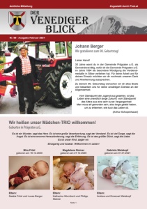 Wintersport für Einheimische im aktuellen COVID-19-Lockdown Skilauf bei den Bichlliften: Das Skifahren ist seit dem 24.12.2020 unter Einhaltung der vorgesehenen Regeln möglich. Da es am Vormittag derzeit so gut wie keine Nachfrage gibt, haben wir uns entschlossen, die Öffnungszeiten zu ändern: v. l. n. r.: Valentin Steiner (Pötzer Michaela), Rafael Islitzer (Viertler Bianca), Natalie Weiskopf (Edelbrunner Andrea), Patrick Islitzer (Schlatner Regina), Noah Gasser (Katatsch Simone), Justin Mariner (Pulverer Siegfrieds Jasmin), David Mat- tersberger (Schneider Beate) Wir sind Blumen in Gottes Garten Unsere Erstkommunionkinder! Für uns Erstkommunionkinder beginnt die Vorbereitungszeit auf unser schönes Fest. Aufgrund der aktuellen Covid-19 Maßnahmen muss unser Vorstel- lungsgottesdienst leider auf einen späteren Zeitpunkt verschoben werden. Unser Thema: Wir sind Blumen in Gottes Garten. Jesus ist für uns die Sonne, die uns wärmt und wachsen lässt. Deshalb wollen wir mit ihm feiern und ihm danken. Seite 2 Für alle Nicht-Skifahrer gibt es öst- lich vom „Kleinen Lift“ einen feinen Winterwander/Rodelweg. Winterwandern : Die Winterwanderwege werden nach Schneefällen, im Anschluss an die Loipenpräparierung, präpariert. Eine neuerliche Präparierung erfolgt nach neuen Schneefällen bzw. nach Stark- windereignissen. Angeboten werden folgende Winter- wanderwege: Berger-Egg, Bichl Großebene, Zoll- haus/Repler, Bodenalm, Osema/Pey- rer, Bobojach/Schöne Welt Langlaufen : Von Montag bis Donnerstag stellt der TVB nur die Loipen zwischen Einstieg Iselweg und Hinterbichl bis Toinigbrü- cke zur Verfügung. Freitag, Samstag und Sonntag stehen auch die Bobojach Loipe und die Panoramaloipe zur Verfügung. Bei Starkwindereignissen und Schneefall wird jedenfalls das Ende des Windes/ Schneefalles abgewartet und erst dann wieder gespurt. Bei starker Windtätigkeit in Prägra- ten gibt es die Möglichkeit auf die benachbartenLoipeninVirgenoderauf andere Loipen in Osttirol auszu- weichen. Die Saisonkarte für Einheimische ist auf allen Loipen in Osttirol gültig, und kann am Di und Do von 8:00 Uhr bis 12:00 Uhr im Infobüro in Prägraten um € 50,00 erworben werden. Die aktuellen Öffnungszeiten und Bedingungen können unter www.bergfex.at/tirol/langlaufen/ praegraten-grossvenediger oder unter https://langlaufen.osttirol.com (Loipenbericht) abgerufen werden. Eislaufen/Eishockey: Im Freitzeitzentrum Gries unter Beachtung der COVID-19 Regeln jederzeit möglich. Winterreiten Reiterhof Ortnerhof: Ab 7. Februar 2021 nach dem Lock- down wieder möglich! Bei Änderung der COVID-19 Notmaßnahmenverordnung kann es auch zu Änderungen bei den Winter- sportmöglichkeiten kommen. Montag bis Donnerstag: 12:00 Uhr bis 16:00 Uhr Freitag bis Sonntag: 09:00 Uhr bis 16:00 Uhr Während der Semesterferien vom 08.02.2021 bis 12.02.2021 gel- ten die normalen Öffnungszeiten (jeweils von 09:00 Uhr bis 16:00 Uhr )! Die Sport- und Freizeitanlagen Prägraten a.G. dankt für euer Verständnis!