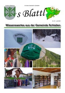 Seite 2 ‘ s Blattl Juli 2021 .... allen Spendern für unsere Ge- meindezeitung seit Juli 2020. Dorer Bernadette, Duiner Werner, Engeler Anna, Engeler Georg, Fasching Angela, Gantschnig Bernadette, Gantschnig Hilda u. Elfriede, Gantschnig Josefine u. Marzell, Giordano Dorothea, Gomig Bernhard, Gomig Hedwig, Gomig Maria u. Anton, Gysin Elisabeth, Holzer Andrea - Amlach, Holzer Elisabeth - Patriasdorf, Holzer Tiburtius, Huber Hirlanda, Hussl Monika, Ingruber Aloisia, Ingruber Barbara, Ingruber Brigitta u. Anton, Jesacher Genoveva, Kirchmair Bernadette - Schwaz, Lercher Veronika - Ainet, Lumaßegger Josef u. Maria - Lienz, Lumaßegger Martina, Lumaßegger Peter Paul, Moser Margoth - Lienz, Mühlburger Andrä, Müller Erna, Niedertscheider Annemaria, Niedertscheider Elisabeth u. Josef, Nöckler Andreas, Ortner Ida, Panzl Barbara, Panzl Oswald, Pedarnig Franz, Pedarnig Monika, Plattner Alois - Tristach, Rainer Sebastian, Rindler Maria Katharina, Rindler Maria Magdalena u. Martin, Rindler Robert, Rofner Pauline u. Josef, Rossmann Klaus, Scherer Christine u. Michaela, Schneider Maria u. Othmar, Staudinger Theresia, Steiner Josef - St. Jakob i. D., Steiner Elisabeth, Steiner Johann, Steiner Ottilie, Stolzlechner Alois, Tabernig Aloisia, Tabernig Johann/Hermine Wattens, Tabernig Elisabeth u. Sieglinde, Tabernig Ludwig, Waldner Waltraud, Warscher Josef, Widner Karin, Wolsegger Isidor u. Antonia Die Umstellung auf Online-Zah- lungen funktioniert auch bei unseren Lesern sehr gut. Auf das Beilegen von Zahlscheinen werden wir künf- tig verzichten. Die Zahlscheingebühr übersteigt derzeit bereits die Druck- kosten einer Gemeindezeitung. Wir freuen uns trotzdem auf eure Spenden in bar an die Gemeindekas- se oder durch Online-Überweisung. So können wir das Blattl weiterhin ohne viel lästige Werbung gestalten. Raiffeisen Landesbank Tirol AG BIC: RZTIAT22 IBAN: AT53 3600 0000 0912 1864 IMPRESSUM Medieninhaber, Herausgeber und Verleger: Gemeinde Schlaiten 9954 Schlaiten, Mesnerdorf 71, Email: gemeinde@schlaiten.gv .a t Für den Inhalt verantwortlich: Medienausschuss, Obm. Erich Gliber; Redaktionelle Mitarbeit: Myriam Détruy, Elisabeth Gantschnig, Stefan Lumaßegger, Ludwig Pedarnig, Peter Paul Rindler, Fotos: Archiv Gem. Schlaiten, Myriam Détruy, Ludwig Pedarnig und Peter Paul Rindler, Druck: Greenprint Osttirol, 9951 Ainet 90; gedruckt nach der „Richtlinie Druckerzeugnisse“ des Österreichischen Umweltzeichens UW-Nr.: 834 GEMEINDEINFO www.schlaiten.gv.at Parteienverkehr: Mo - Fr 07.30 - 12.30 Uhr Waldaufseher: Mo 13.00 - 16.00 Uhr Bgm Ludwig Pedarnig 04853/5213-10 0676/847580500; gemeinde@schlaiten.gv.at Bgm-Stv. Sebastian Rainer 0664/5311043 info@rainer-sebastian.at Kassa: Daniela Tabernig 04853/5213-11; kassa@schlaiten.gv.at GWA: Martin Falkner 04853/5213-12 0676/847580100; gwa@schlaiten.gv.at WIR SAGEN EIN HERZLICHES „VERGELT‘S GOTT“ Gemeinde ...................... 4 - 12 Impressum.................................... 2 Gemeinderatsbeschlüsse ...... 4 - 10 Rechnungsabschluss 2020 ......6 - 7 Digitalisierung Hochbehälter......... 9 Trinkwasseruntersuchung .......... 10 Der Wald in Osttirol .....................11 Gemeinde - Diverses ..................12 Vereine, Pfarre ............ 13 - 17 Neue Bücherei............................ 13 Feuerwehr .................................. 14 Musikkapelle............................... 15 Sternsingen ................................ 16 Pfarrgemeinde ............................ 17 Verschiedenes ............ 18 - 26 Kindergarten ............................... 18 Honig - Anton Ingruber ............... 19 Verschiedenes ..................... 20 - 22 Gratulation - Prüfungen .............. 23 Gratulation - Geburtstage .... 24 - 25 Goldene Hochzeit ....................... 25 Bernhard Tabernig 60er.............. 26 Geburten..................................... 26 Chronik/Nachrufe ....... 27 - 43 Zenzer Wegkreuz ................ 27 - 29 Schafauftrieb Umbalalpe ..... 30 - 32 Chronik - Diverses ............... 33 - 35 Nachrufe: ............................ 36 - 43 Br. Johannes (Jürgen).................36 Notburga Ingruber ...................... 37 Stolzlechner Alois ....................... 38 Maria Steiner, geb. Lercher ........ 39 Andreas Engeler......................... 40 Ludwig Pedarnig......................... 41 Robert Kaltenhofer ..................... 42 Waltraud Steiner .........................43 Sonstiges ........................... 44 Terminkalender ........................... 44 Instagram, Facebook.................. 44