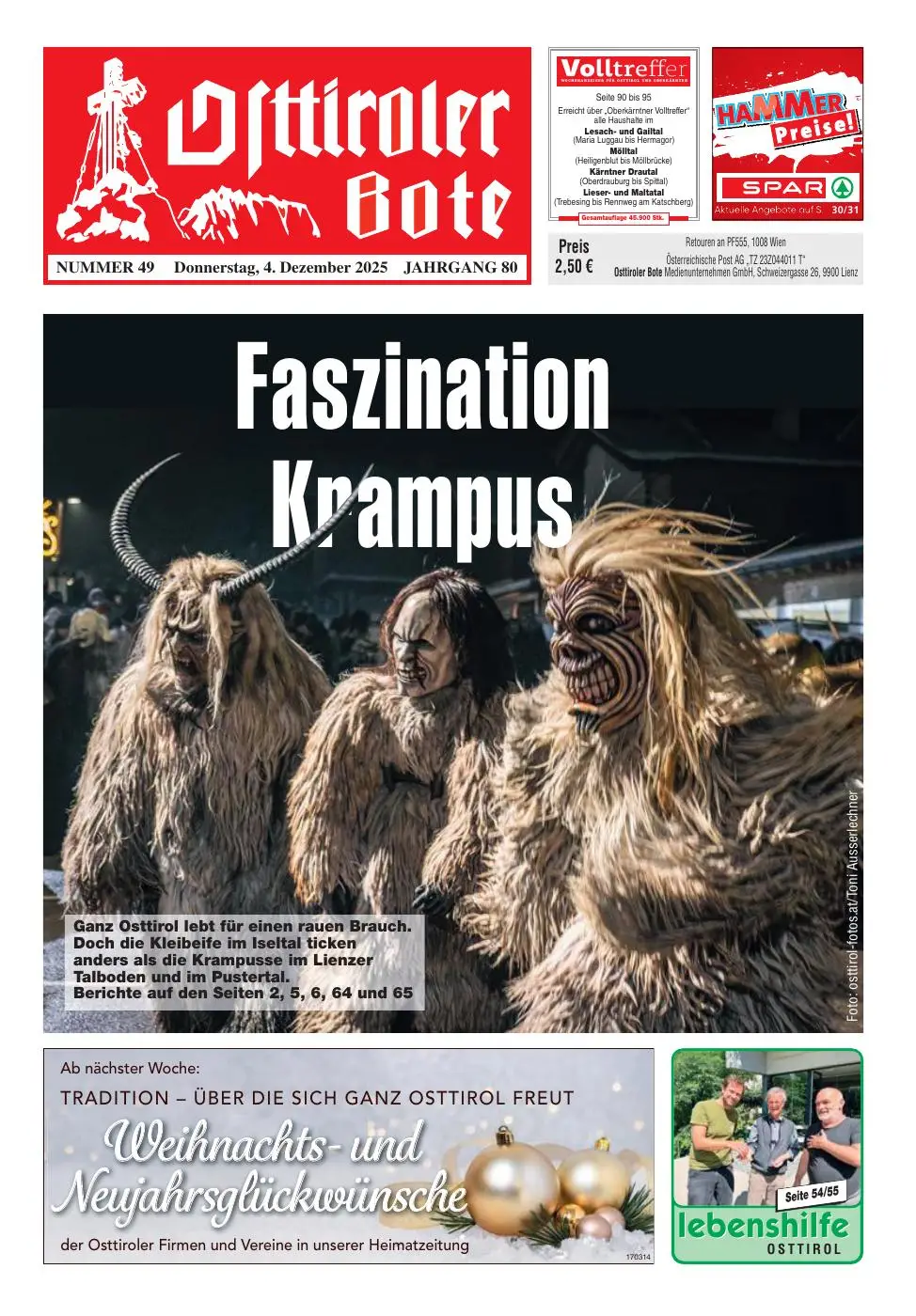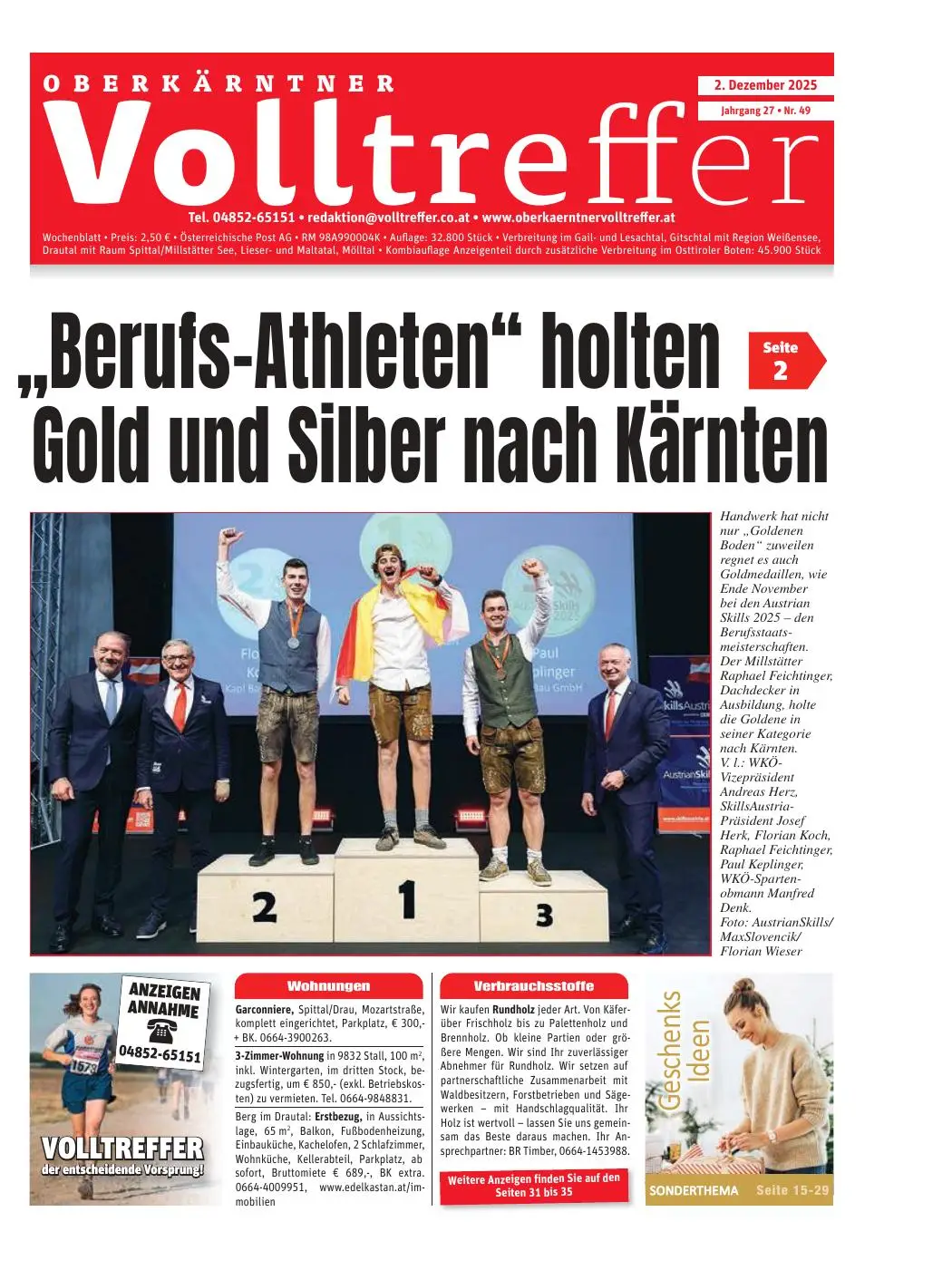 Eine Glückwunschanzeige erscheint als Kombiinserat im Osttiroler Boten und Oberkärntner Volltreffer.