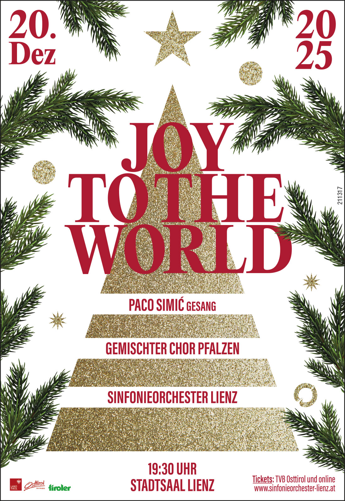 Stadtsaal: Konzert "Joy to the World" mit dem Sinfonieorchester Lienz, Gemischter Chor Pfalzen und Paco Simic (Gesang).Kartenreservierung unter www.sinfonieorchester-lienz.at und beim TVB-Osttirol.